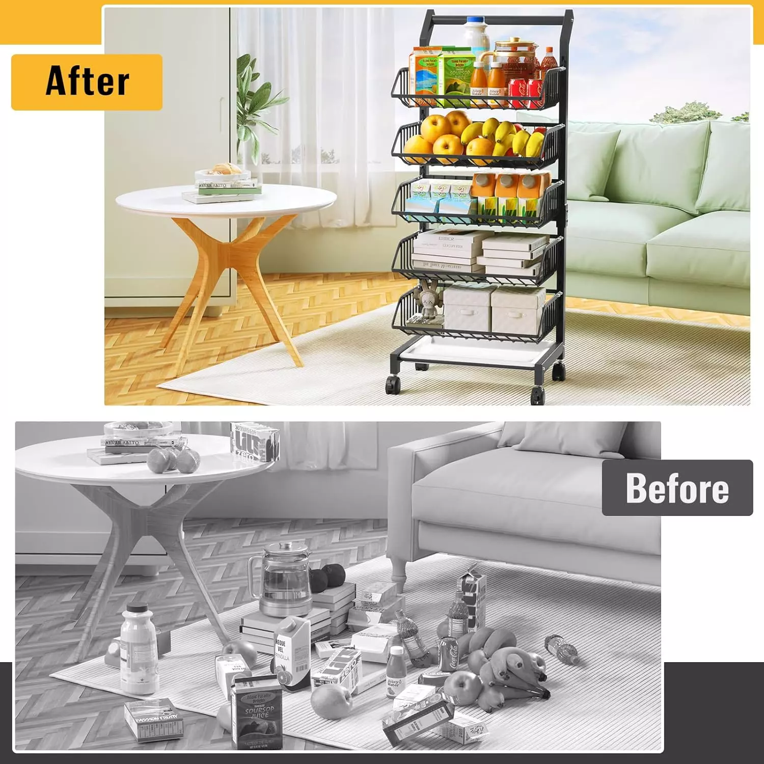 5 Tier Basket Storage Rack Vegetable & Fruit Storage Rack
