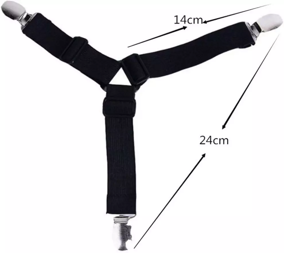 Easy to put on and keeps sheets in place and no more fixing sheets, adjustable length allows desired tension. Triangle designs, which avoid elastic sliding all the time. the triangle is more stable than other shapes. So Our triangle bed sheet suspenders can keep your bed and bed sheet tidy all the time.