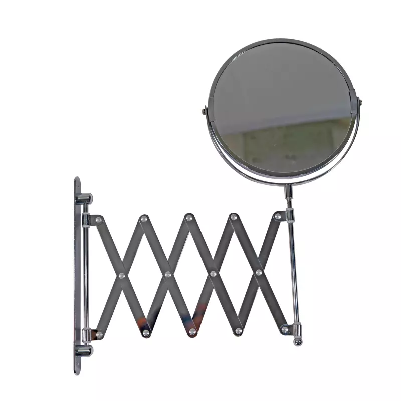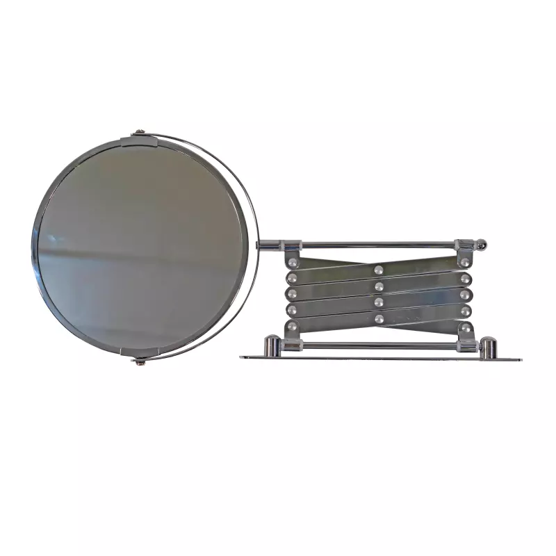 Double-faced, extendable, and wall-mounted, this makeup mirror also comes with 3x magnification. It's also available in 2 finishes; chrome or satin nickel. Its accordion-style adjustable arm ensures the perfect position every time. Made of high-quality brass into a stylish round shape.