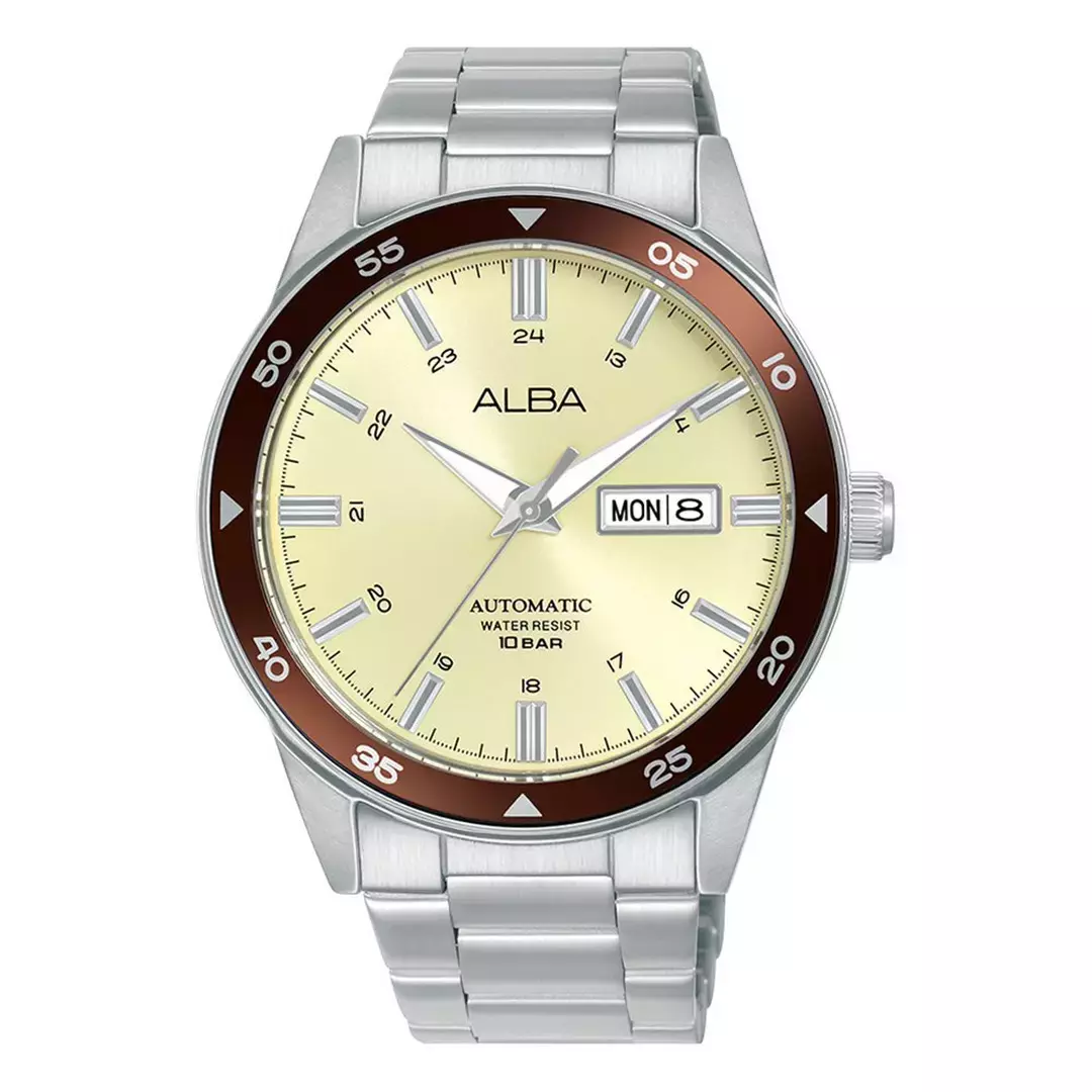 Elevate your style with the ALBA Men's Watch — a perfect fusion of timeless craftsmanship and modern elegance. Designed for the modern man, this timepiece features a sophisticated brown case with a cream dial, offering a unique balance of style and functionality. With its reliable mechanical movement and durable stainless steel band, this watch is an ideal accessory for any occasion, combining classic aesthetics with everyday practicality.