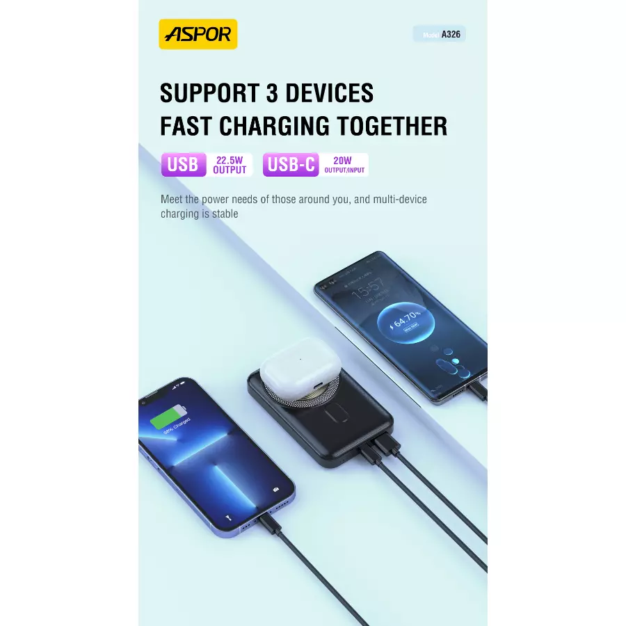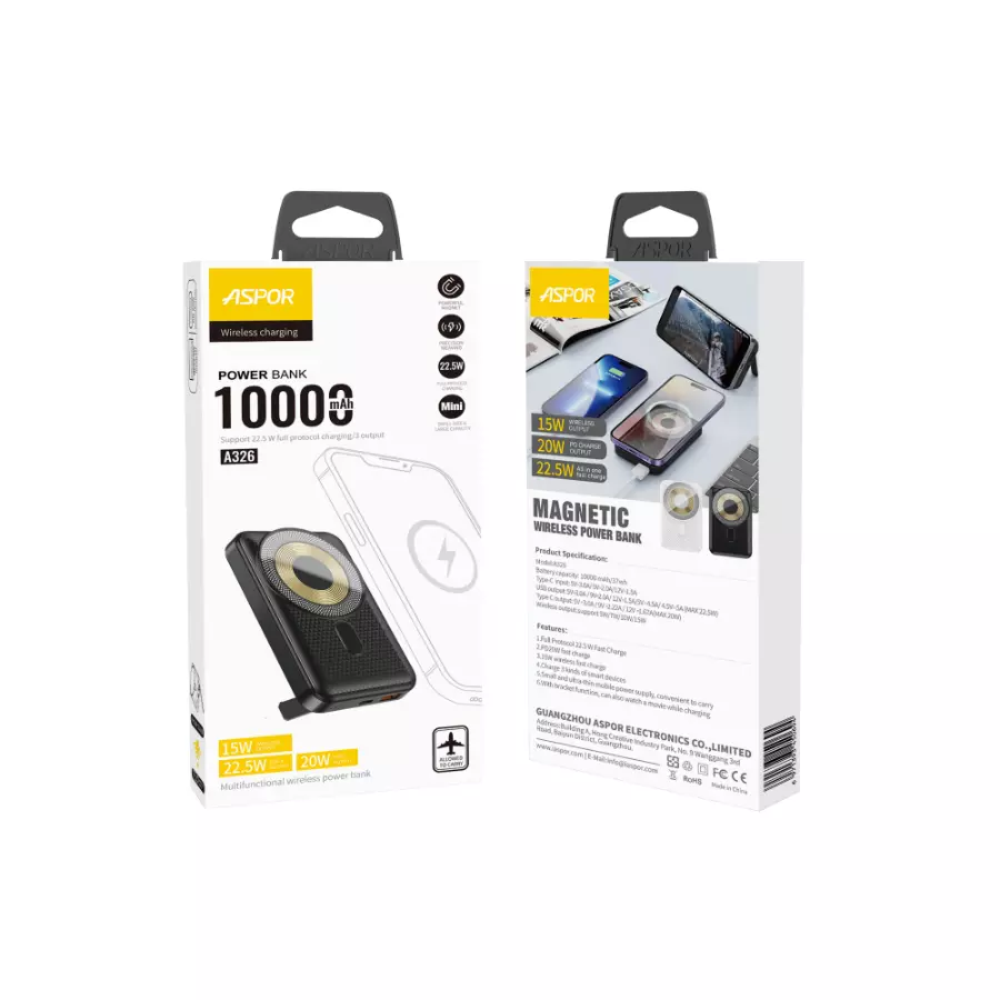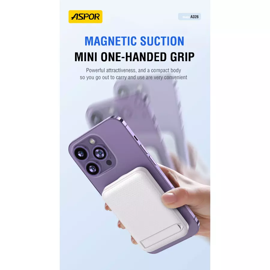 Aspor Digital Display Magnetic Wireless Power Bank 10000mAh