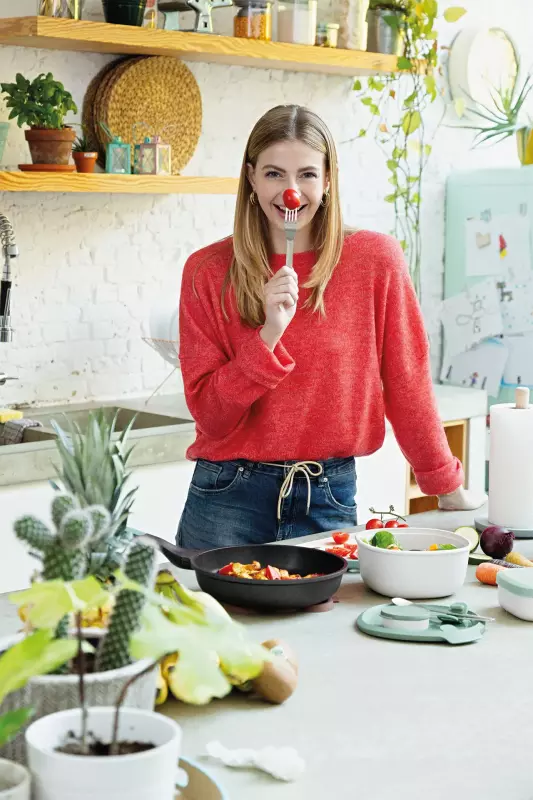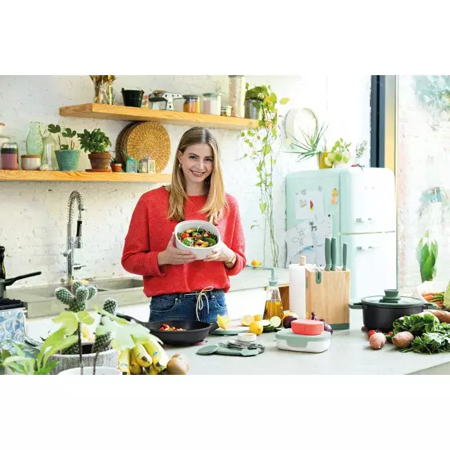 A Greek salad, a Caesar salad or a fruit salad, no matter which kind of healthy dish you’re serving, it will taste great in this stylish salad bowl. No more soaked ingredients due to the integrated sauce container. Just mix all your favourite ingredients and consume them directly with the accompanied flatware set.