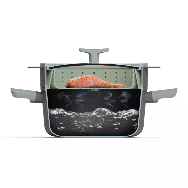 • Energy-efficient cooking by multi-level cooking: steamer in combination with pot
