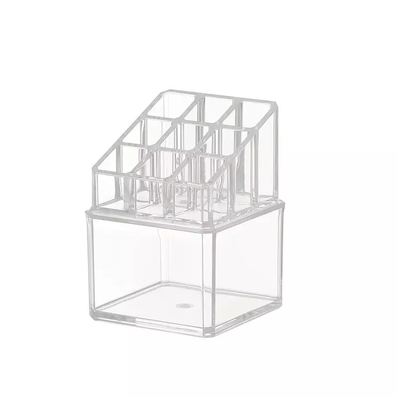Keep your beauty essentials organized with this Nail Polish Rack and Lipstick Holder. Featuring 9 grids, this storage box is perfect for holding your nail polishes and lipsticks, ensuring they are easily accessible and neatly arranged.