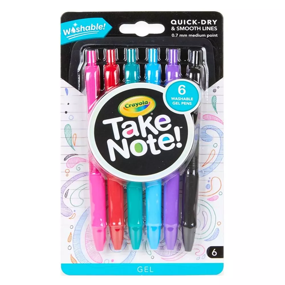 • Unleash creativity with Crayola Take Note! Washable Gel Pens, featuring 6 vibrant colors that are perfect for notes, art projects, and more.