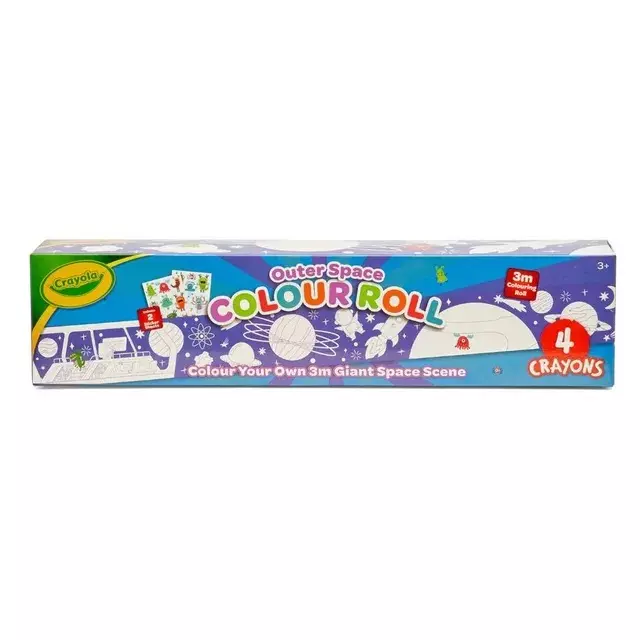 The Crayola Colour Your Own Map Roll - Space is an excellent tool for children to explore space while engaging in creative learning, using their imagination to color space, planets, and stars, children can enhance their cognitive development and expand their knowledge base. With four crayons included, this product is the perfect way for children to learn and explore.