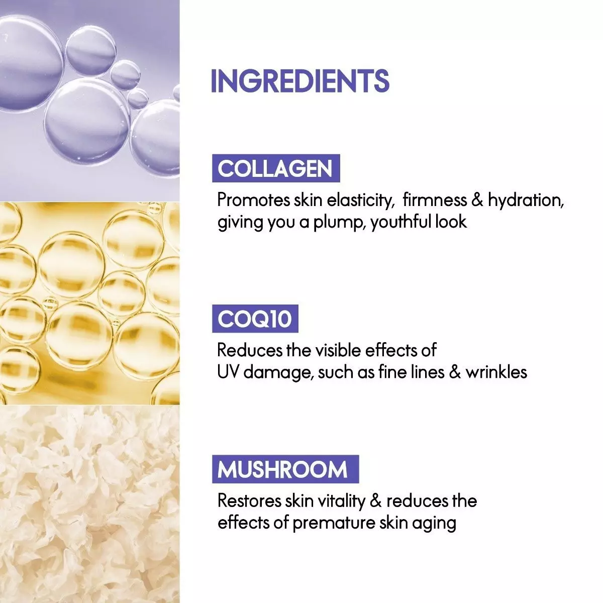 - Deep Hydration & Firming: Infused with Soluble Collagen, Hyaluronic Acid, and Camellia Sinensis Leaf Extract to deeply hydrate, lift, and firm the skin.