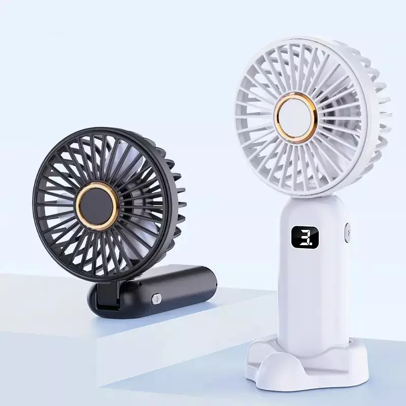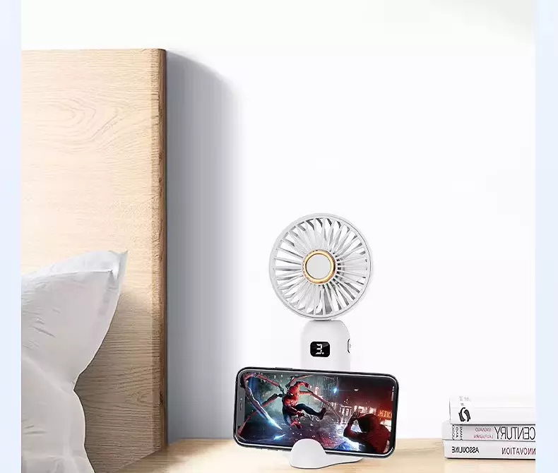 Handheld Mini Fan Foldable Portable Fans 3 Speed 2400mAh with Phone Stand - White