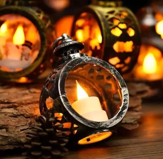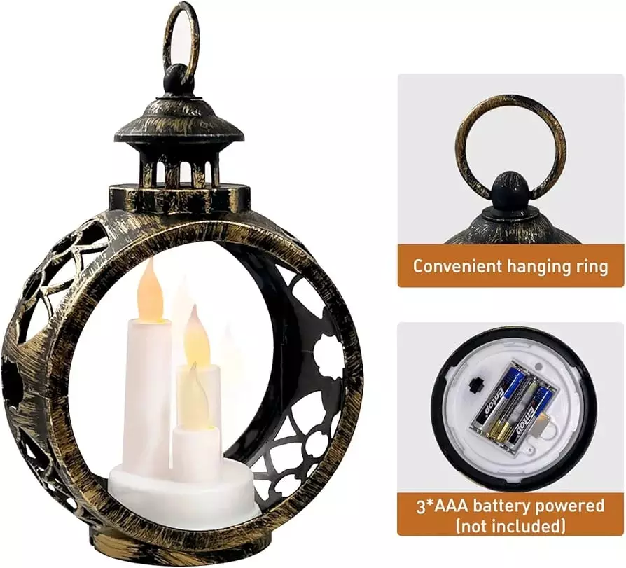 Hanging Vintage Decorative Lantern with Flickering LED Candle Light