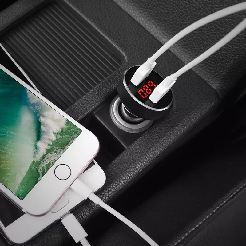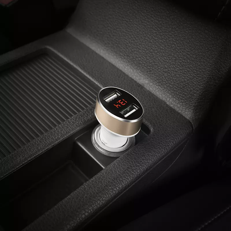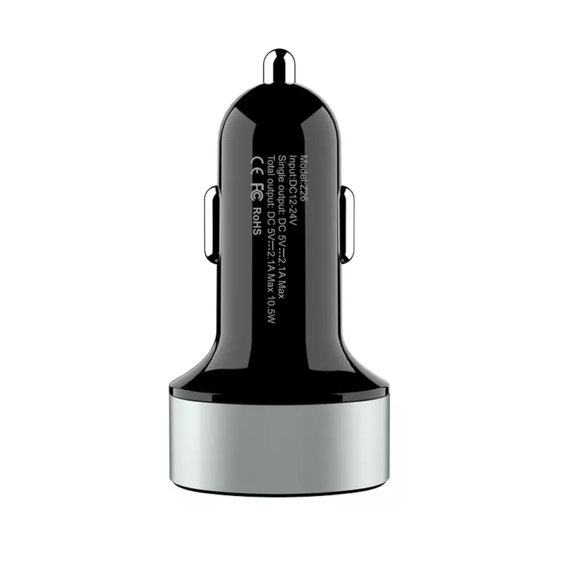 • Z26 dual USB port car charger with digital display total output DC5V 2.1A 10.5W aluminum alloy shell with multiple circuit protection