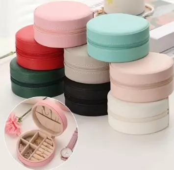 Jewelry Box Large Capacity Soft Lining Elegant Earring Holder Luxurious Minimalist Faux Leather Round Zipper Jewelry Case