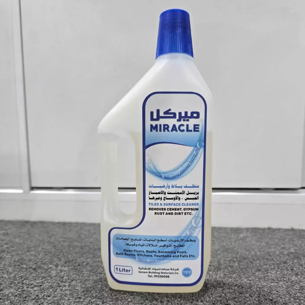 • Miracle solution is used in the stage before laying carpets and rugs, as it removes cement, gypsum and all dirt.