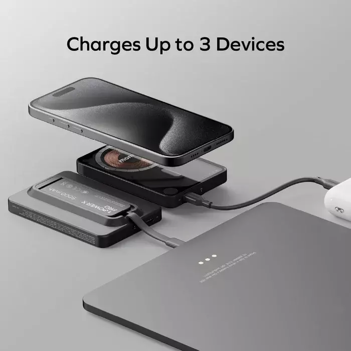 Momax 1 Power X Pro Magnetic Wireless Battery Pack 5000mAh with Stand &Built-in USB-C