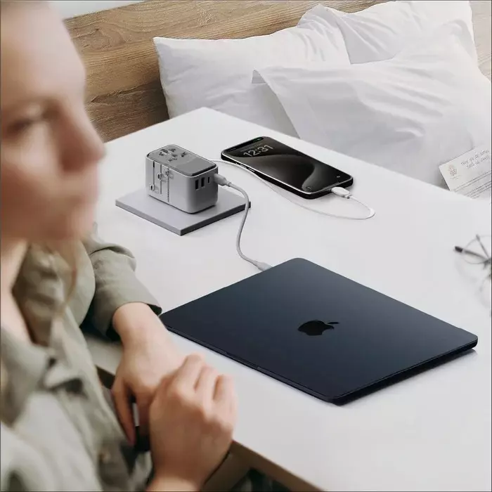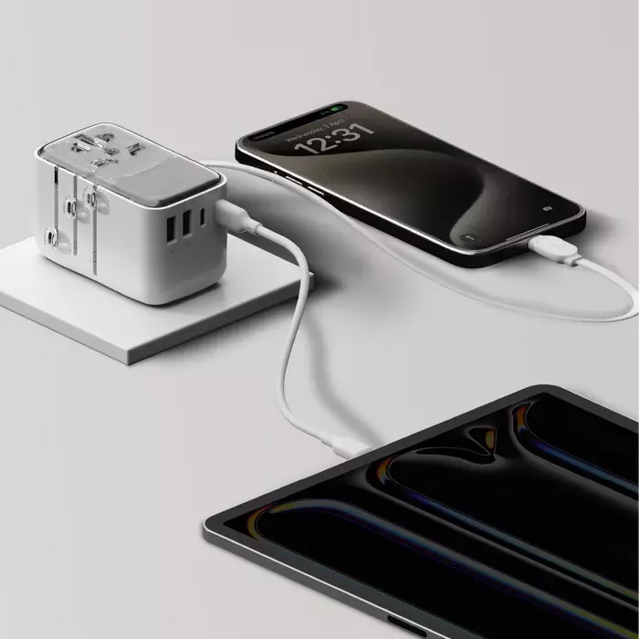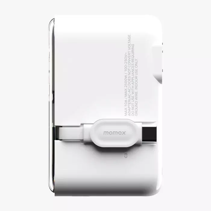 Momax 1-World+ Flow 4 Port Travel Charger With Built-In USB-C Cable 35W - White