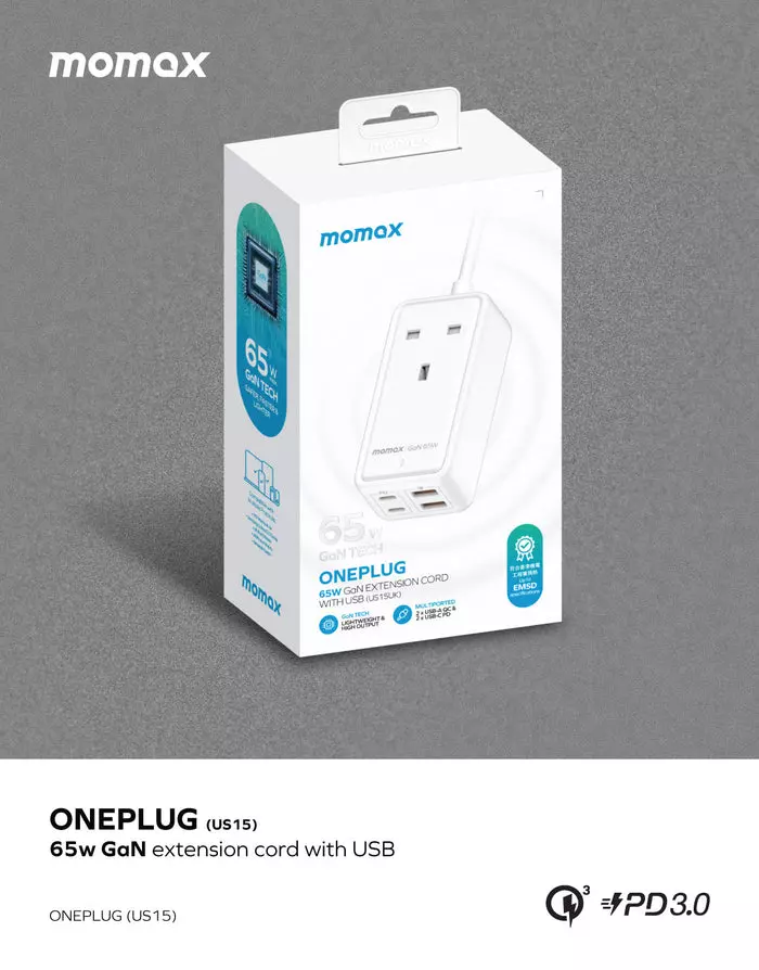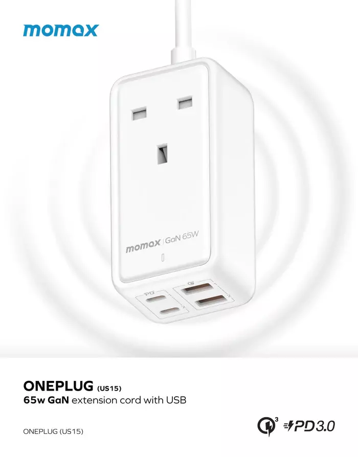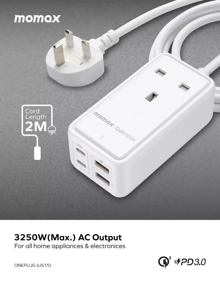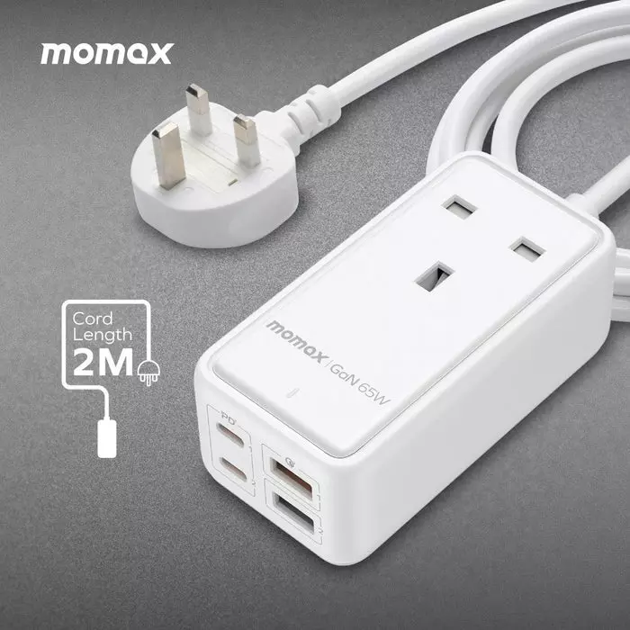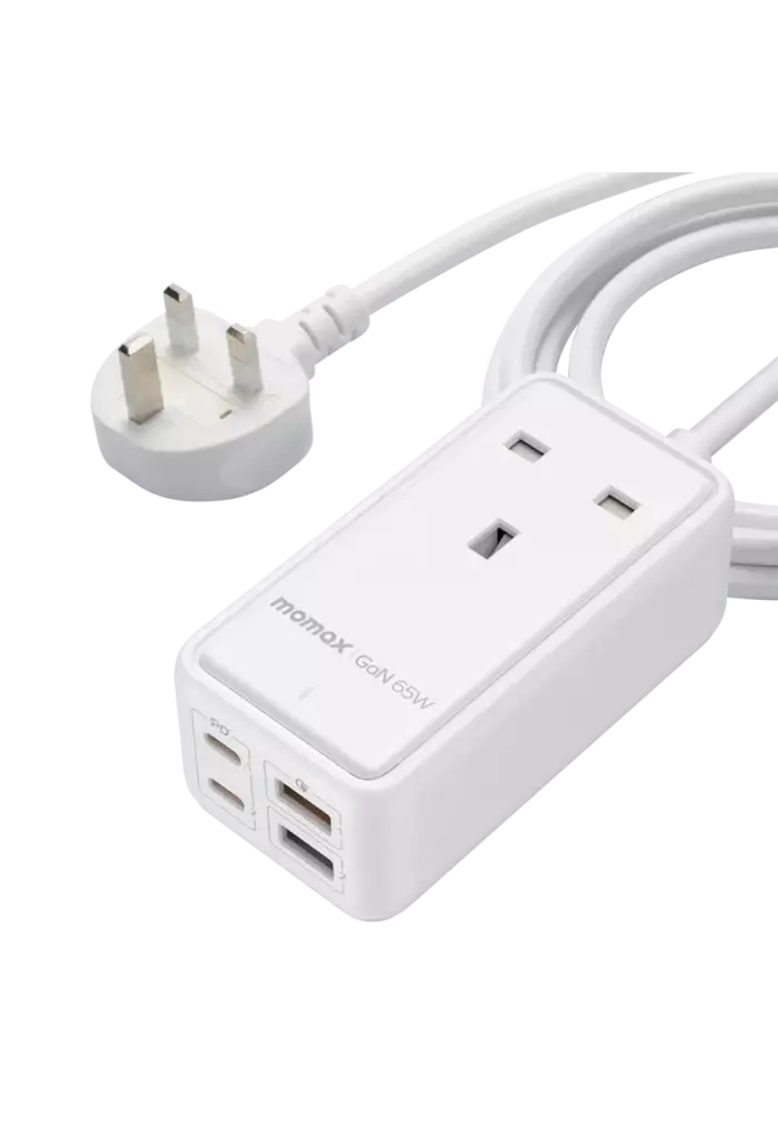Momax Oneplug 65W Extension Cord With USB - White