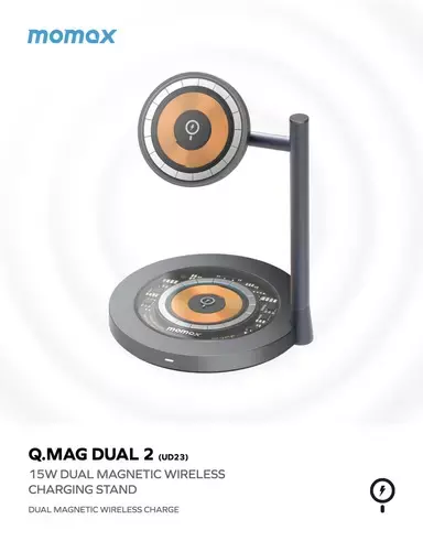 Momax Q.Mag Dual 2 Dual Magnetic Wireless Charging Stand - Transparent