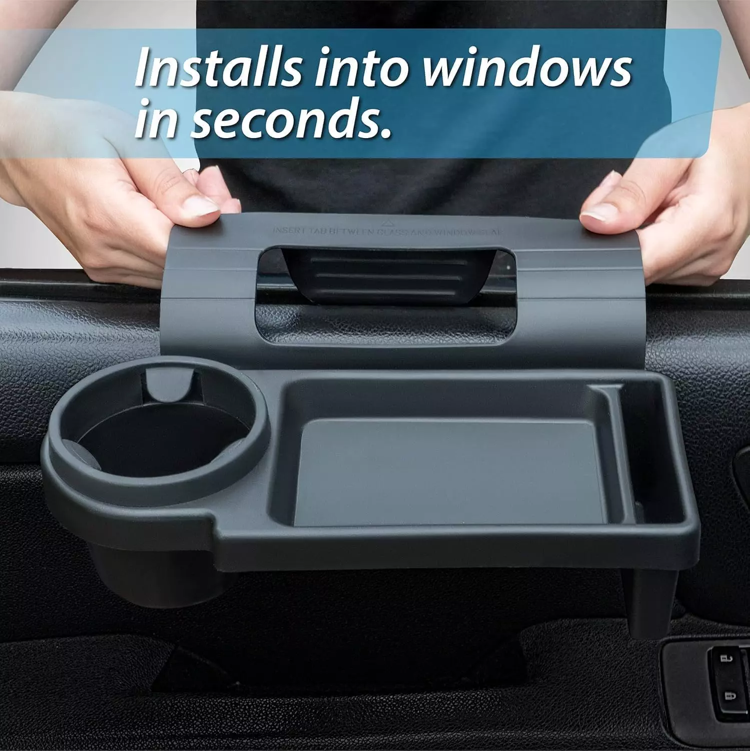 • Versatile Storage: This car window multifunctional tray organizes items in your car, serving as a door side hanging storage box, cell phone holder, and water cup holder, which can also store keys, bluetooth headset, or other small items.
