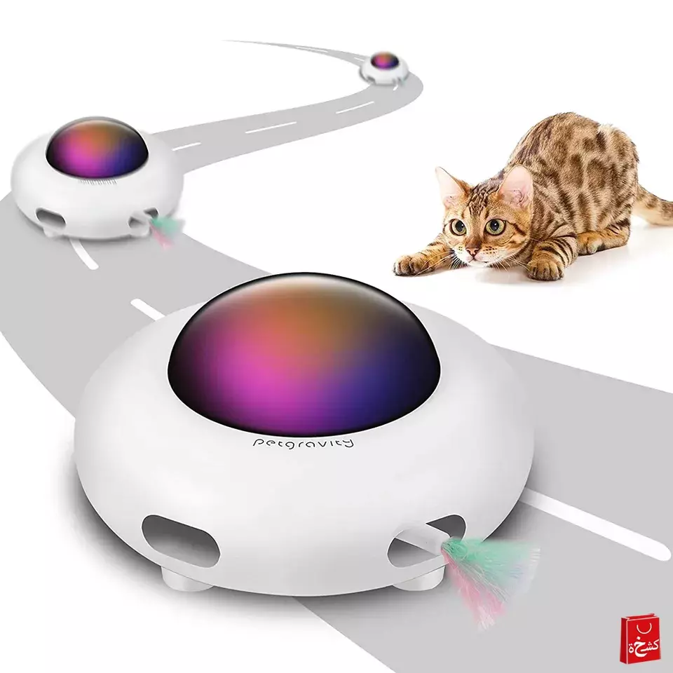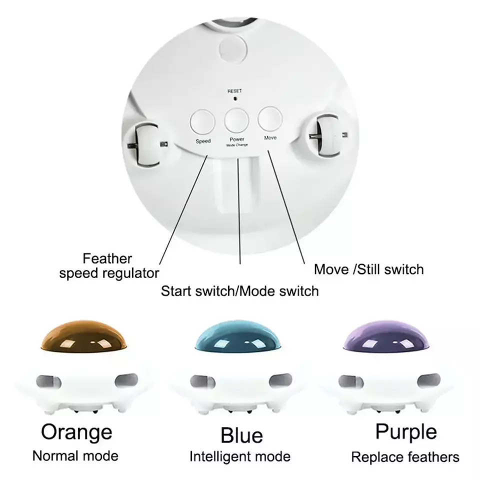 360 UFO Shape Design With Rotating Feather- This automatic cat toy comes with outstretched feather stick to attract cats attention. Play hide and seek. The feather will pop out randomly from every direction to satisfy the cats hunting nature and make the cat more lively.