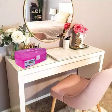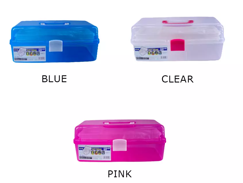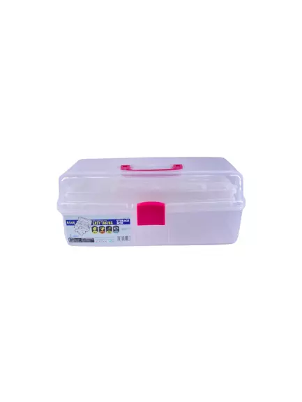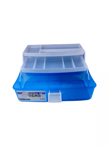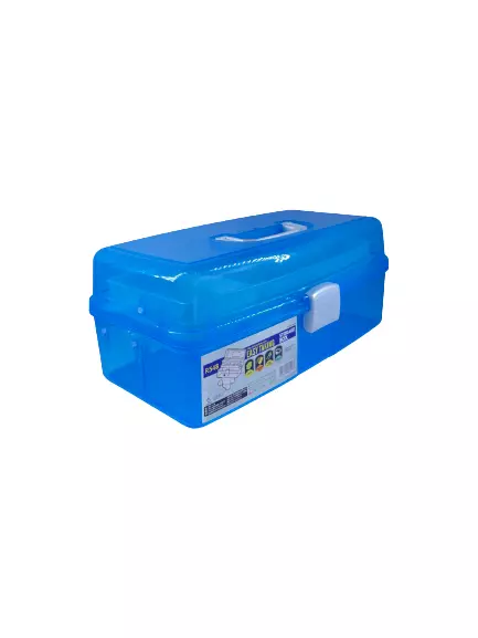 This plastic box is equipped with a sturdy design for all one can need to carry as a tiffin box, a stationary box, an art kit etc. The material used is highly durable and safe to use. The product's lightweight feature makes it easy to carry wherever one wishes to go. The three layer storage makes it easy to store more elements in the same and yet unpack safely without any hassle of spillage due to the product's open and show design.