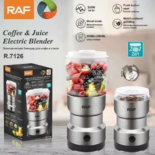 Raf Electric Coffee Grinder & Juice Blender 2 In 1 - Silver