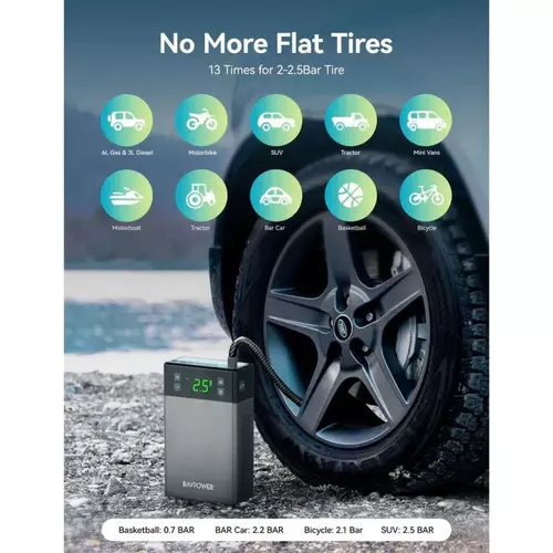 • Effortlessly inflate in any situation with our car air compressor. Preset inflation mode for quick and easy use. Upgrade your driving experience now.