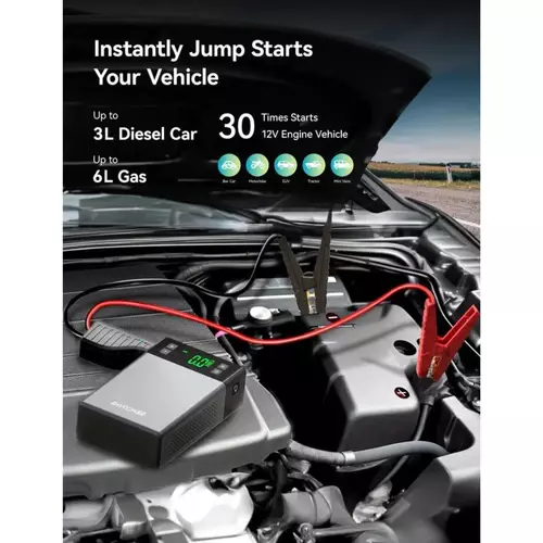 • Instantly jump-start your vehicle up to 3L diesel and 6L gas engines, with up to 40 times starts.