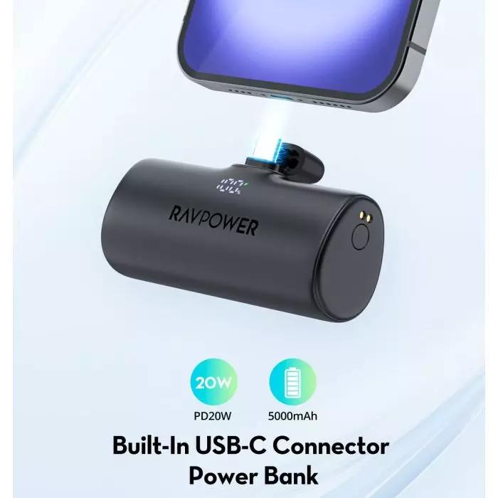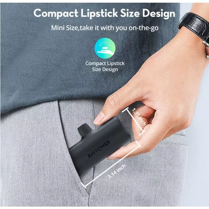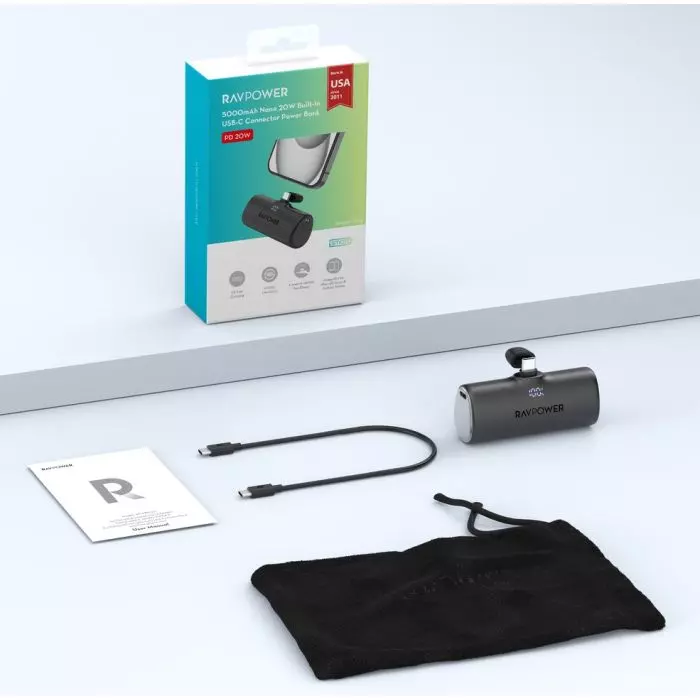 RavPower 5000mAh Nano 20W USB-C Power Bank - Black