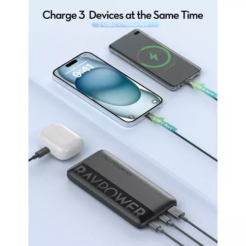 • 1 x RAVPOWER 20W 3-Port Power Bank