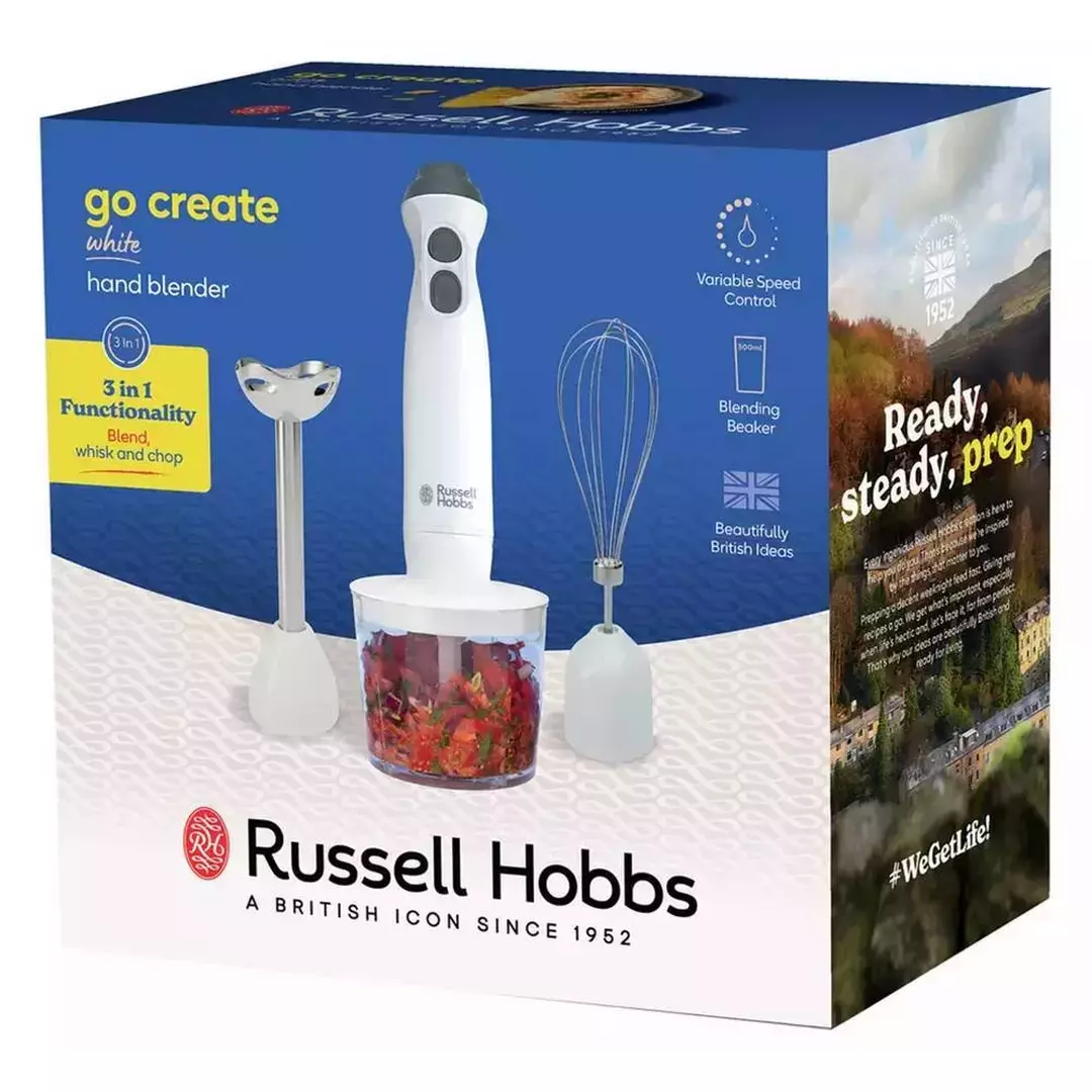 The Russell Hobbs Go Create 3-in-1 Hand Blender is the perfect tool for anyone looking to simplify their meal prep. With its powerful 600W motor, this blender can handle a wide range of tasks, from blending soups and sauces to chopping vegetables. The variable speed settings allow you to adjust the blender's performance to suit different ingredients, giving you the control you need to achieve the perfect consistency every time.