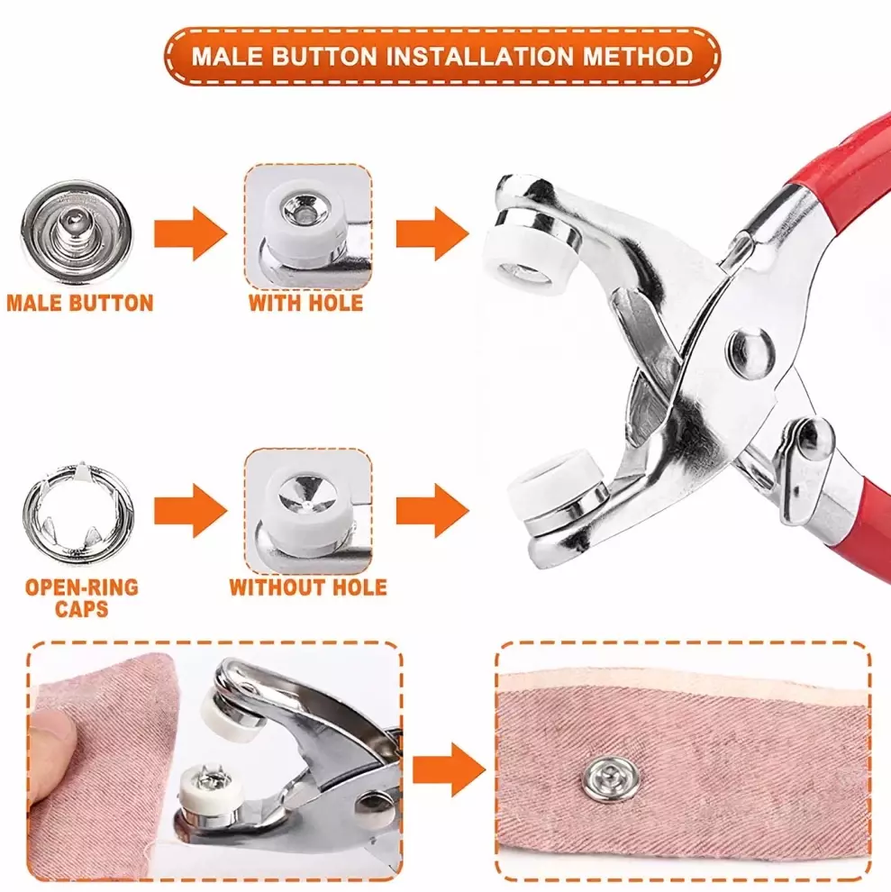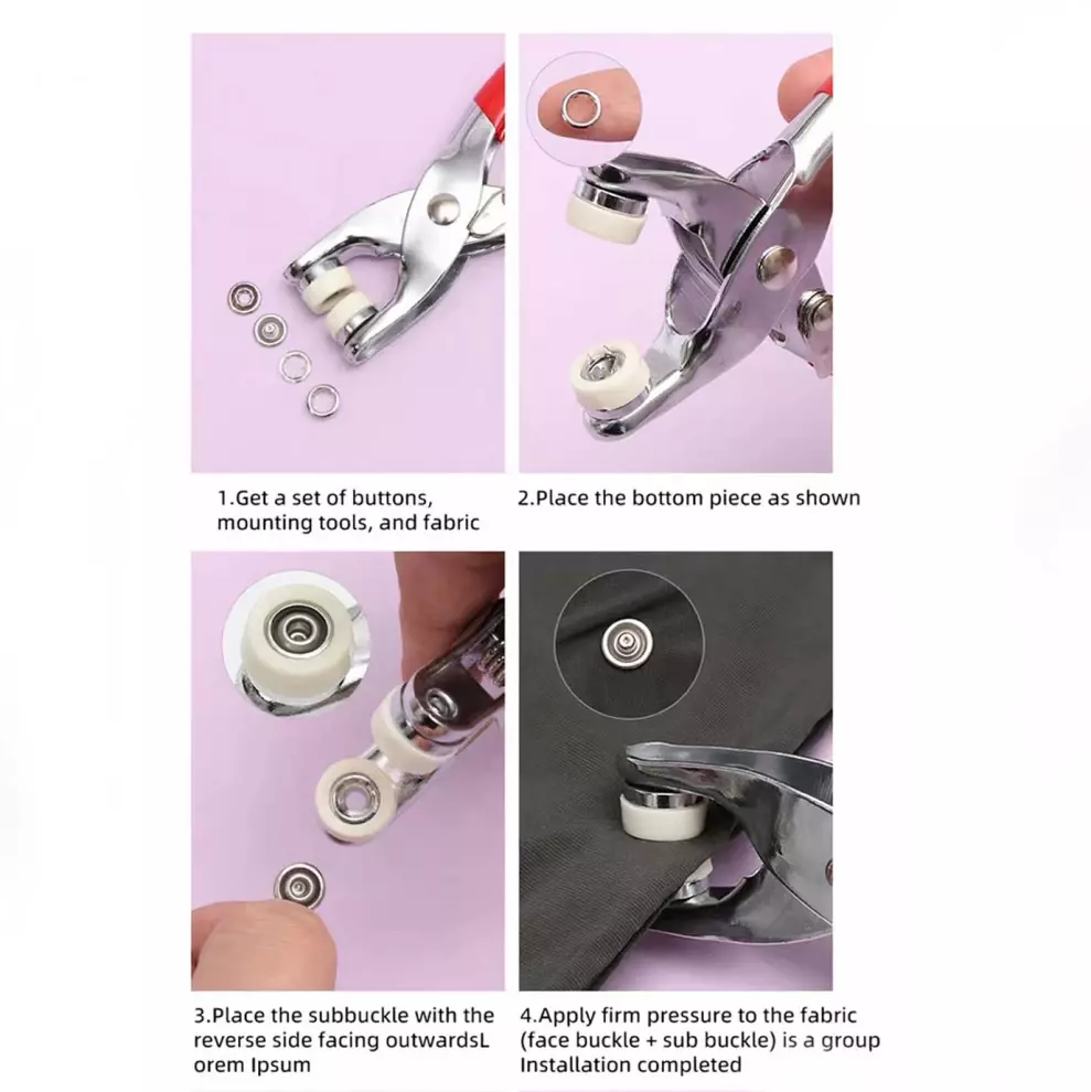 • Step 1) Get a set of buttons mounting tools and fabric