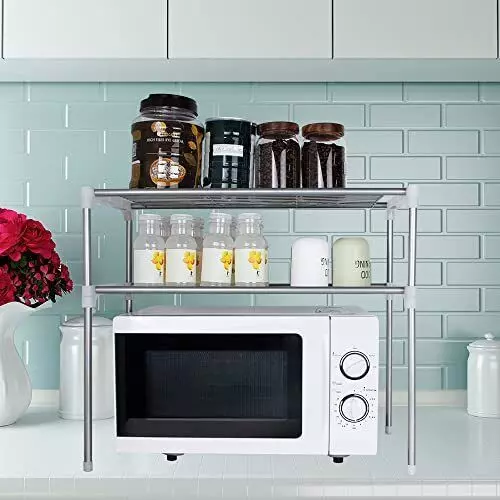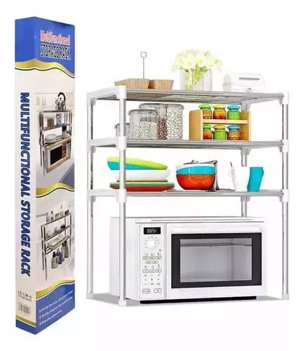 • You can place it above the microwave and use the 3 shelves as additional storage space for your kitchen.