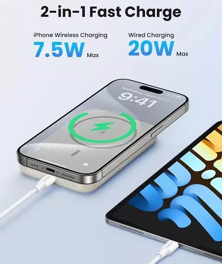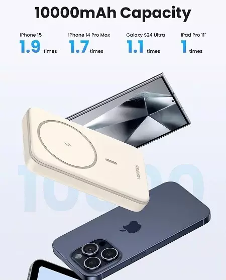 ·        Snap and Charge for iPhone 12-15 series: With a simple touch, UGREEN Magnetic Wireless Power Bank attaches to the back of your iPhone 15 Pro Max without worrying about charging cables or slipping off while charging. It is designed for iPhone15, iPhone15 plus, iPhone15 Pro, iPhone15 Pro Max, iPhone 14, iPhone 14 Pro Max and iPhone 13, 12 Series