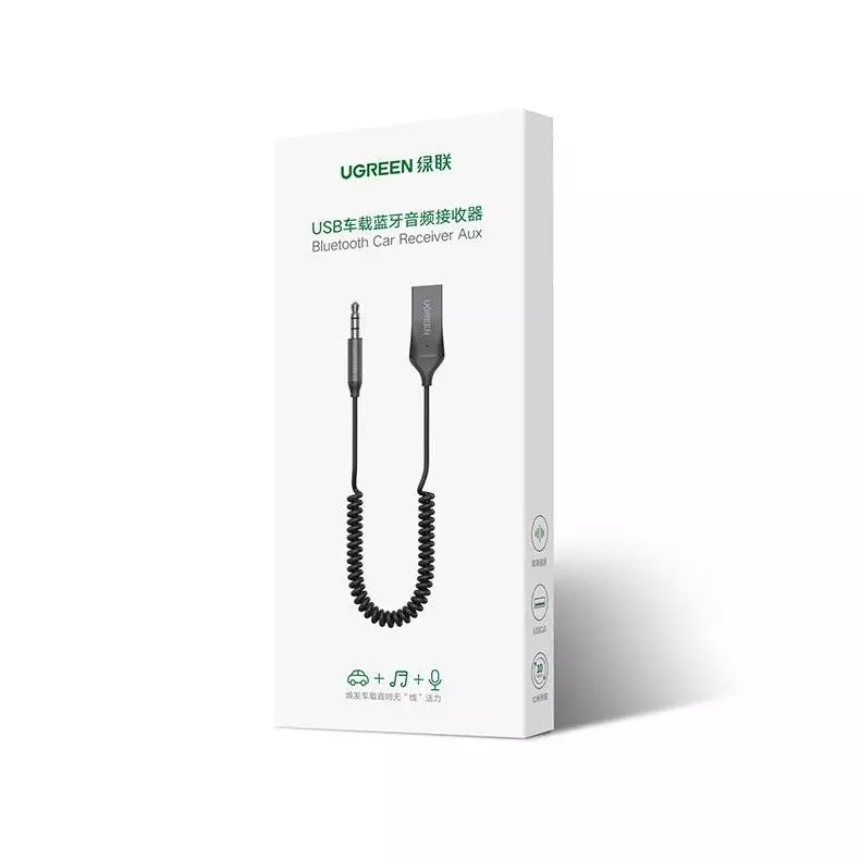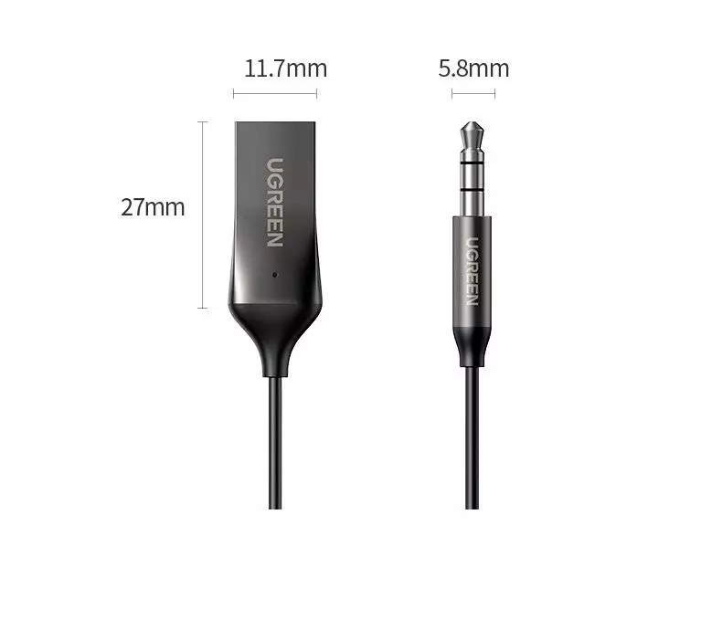 Ugreen Bluetooth 5.0 audio receiver cable USB audio adapter AUX jack Black