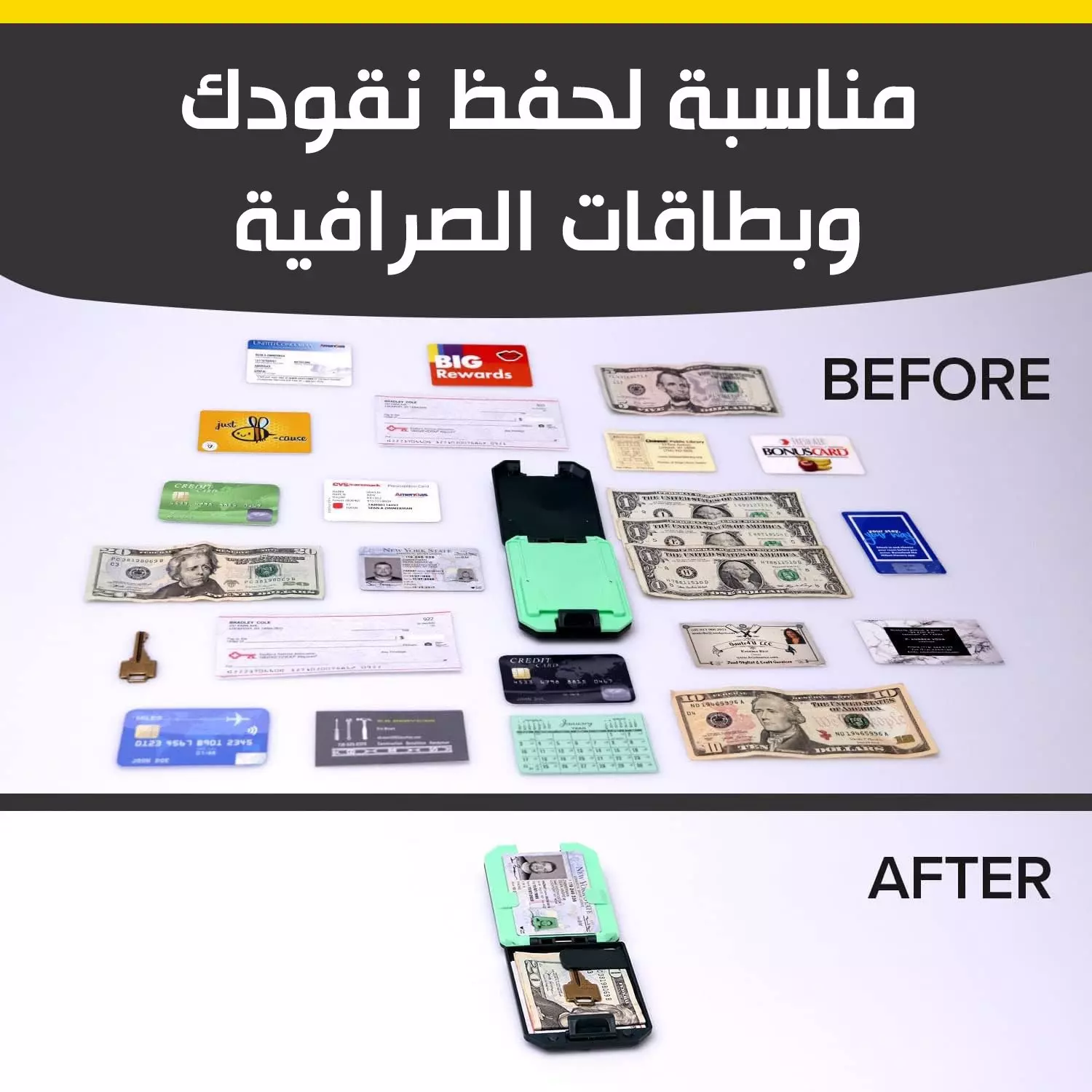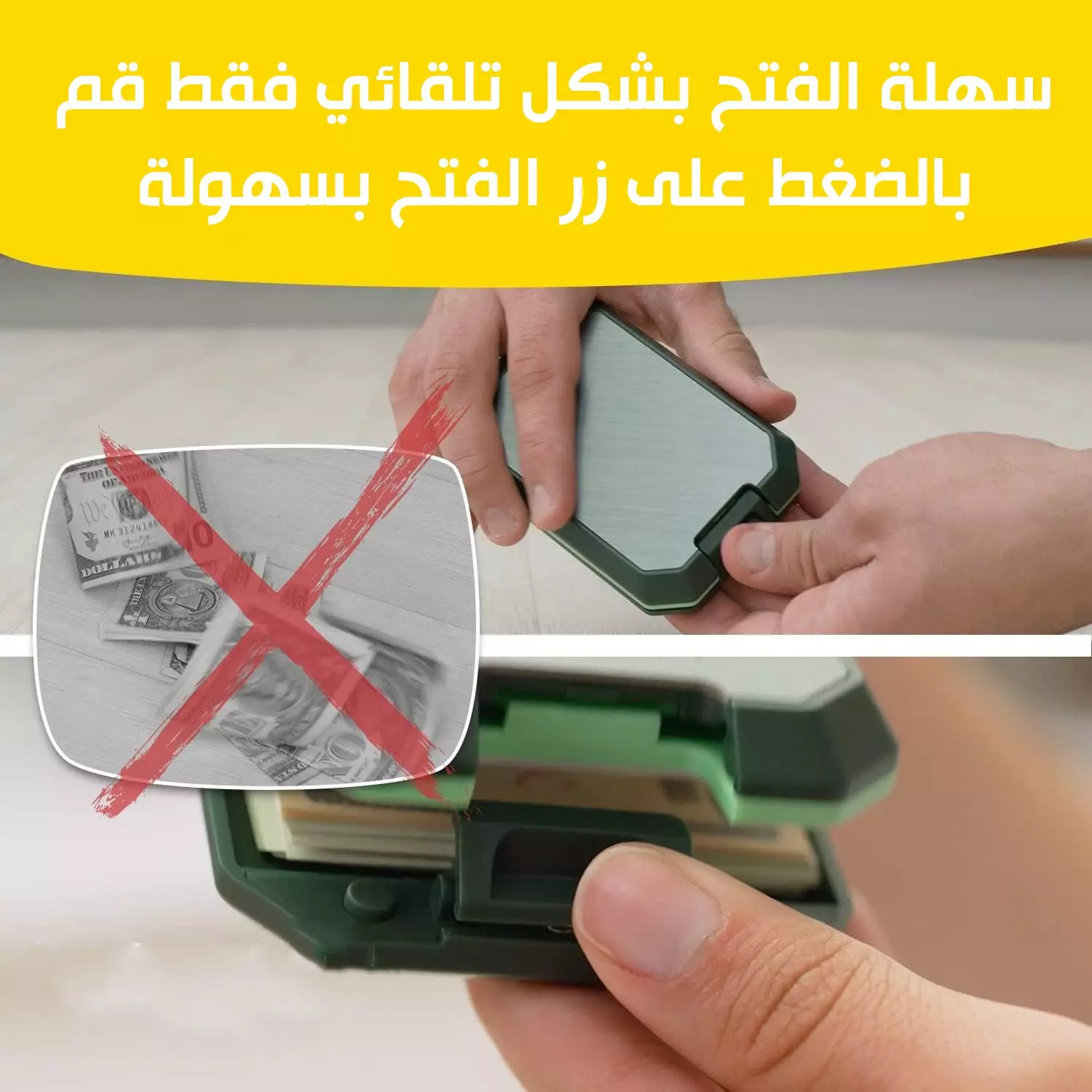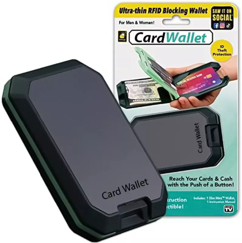 • Wallet for cash and cards is easy to carry and access cards with the touch of a button