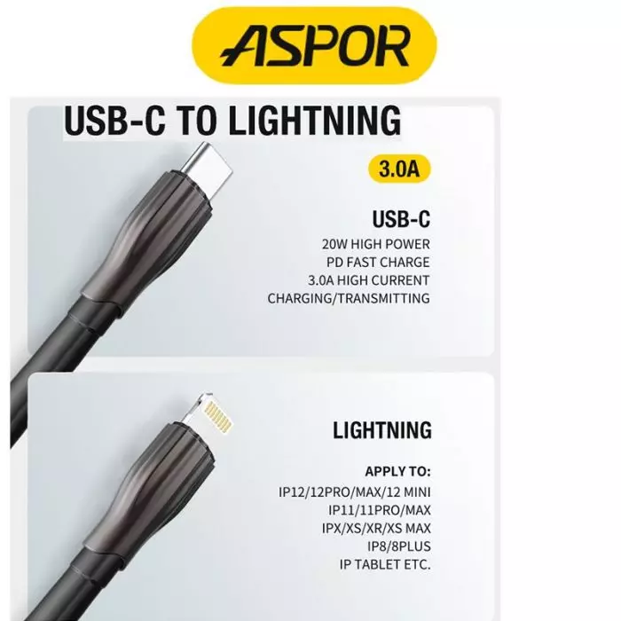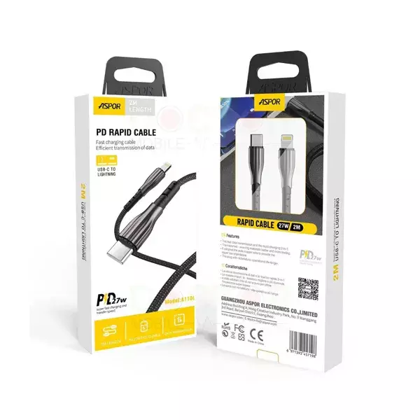 USB-C to LigAspor USB-C to Lightning Cable 27W & 2M htning