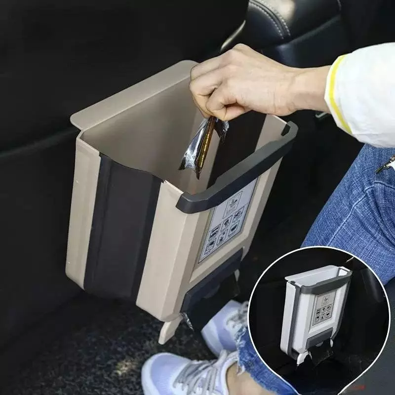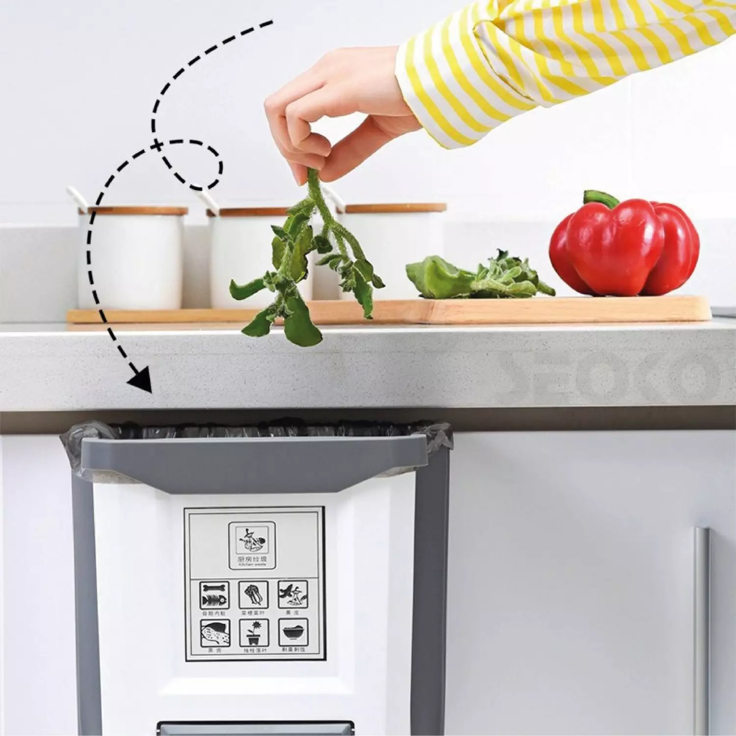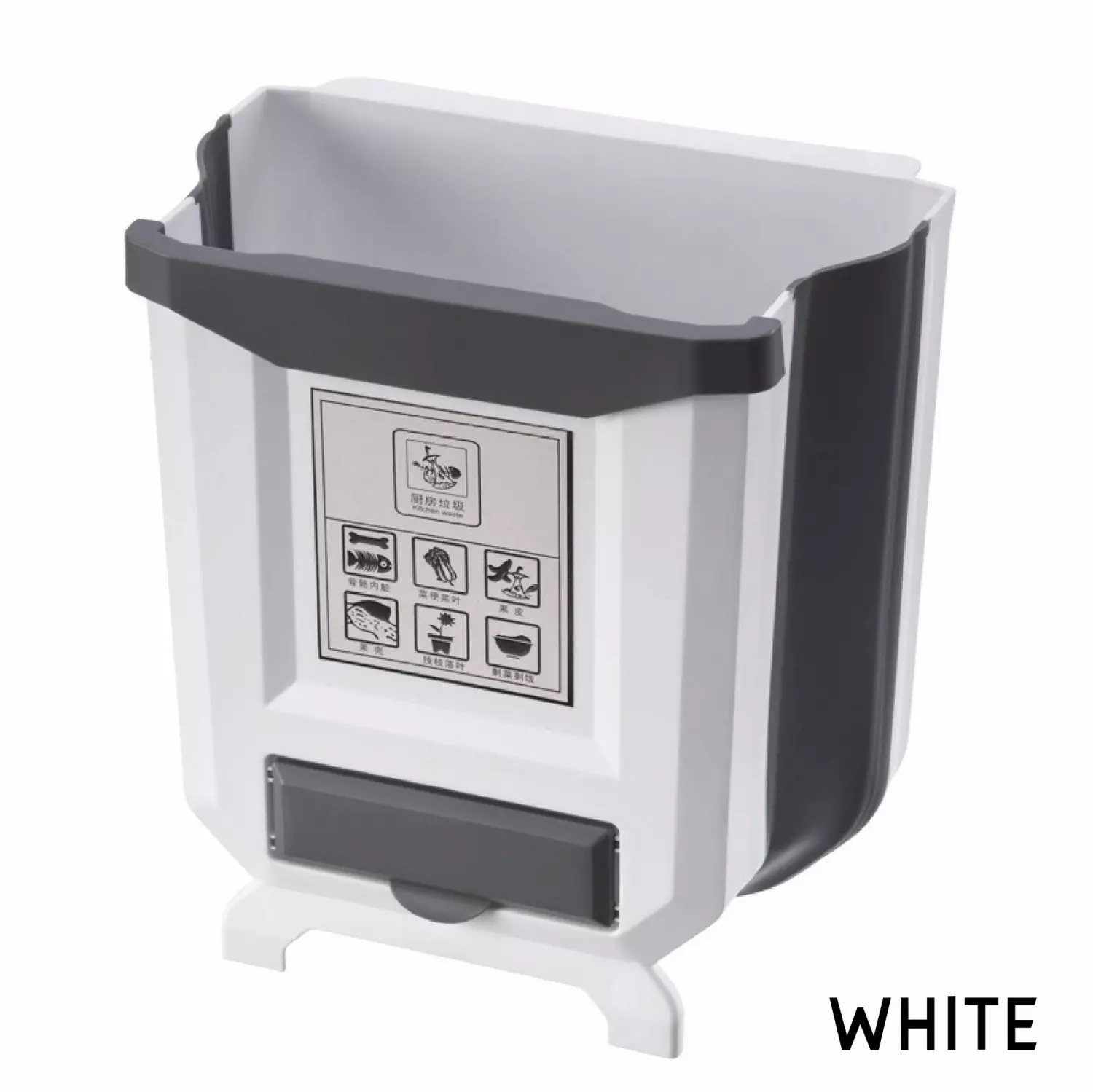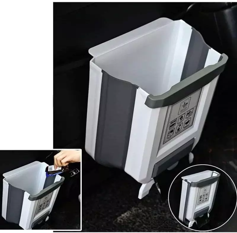 • Folding trash can makes it easy to be used in a kitchen. When you don't use it, you can fold it, and it saves the space in your kitchen.