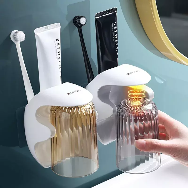 Wall-mounted Mouthwash Cup Toothbrush Rack Organizer