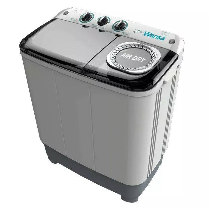 Wansa Twin Tub Washing Machine 7Kg Washing Capacity - White with Gray Lid