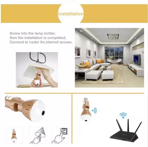 • The WiFi Light Bulb Security Camera can be accessed by your phone through an app in real time. Forget about complicated and bulky security cameras, this light bulb camera doesn’t even look like a camera and can secretly record without cables or wires.