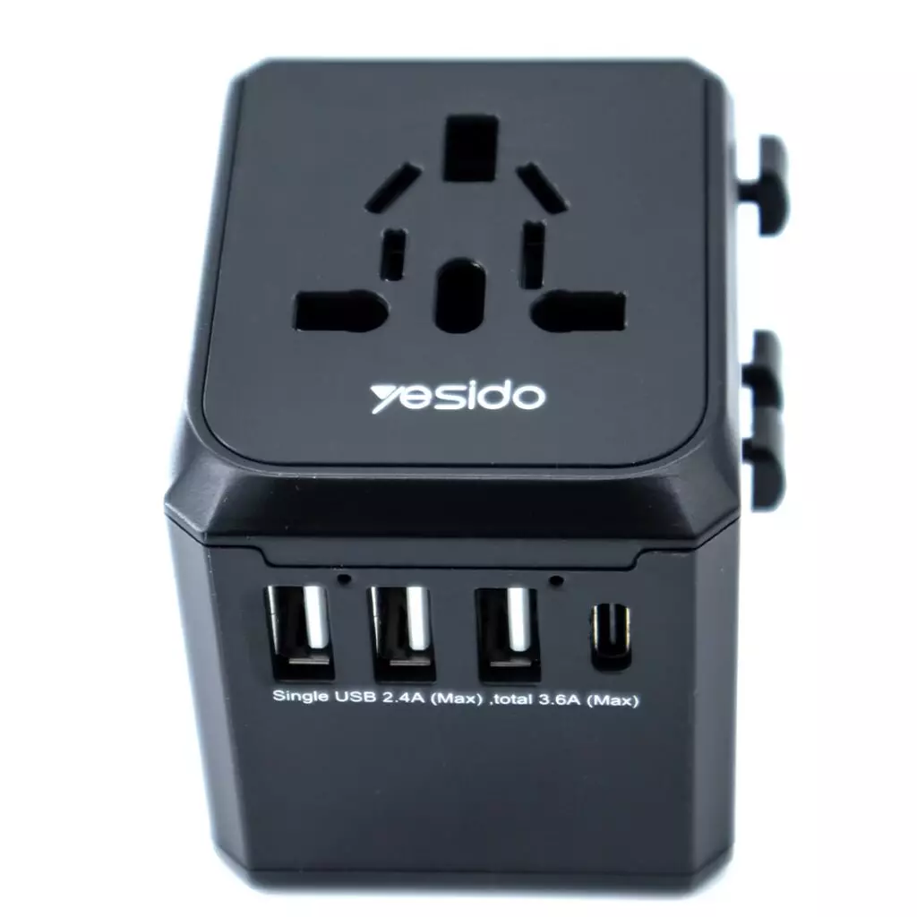Yesido Universal Adapter with 3 USB & Type-C Charging Port