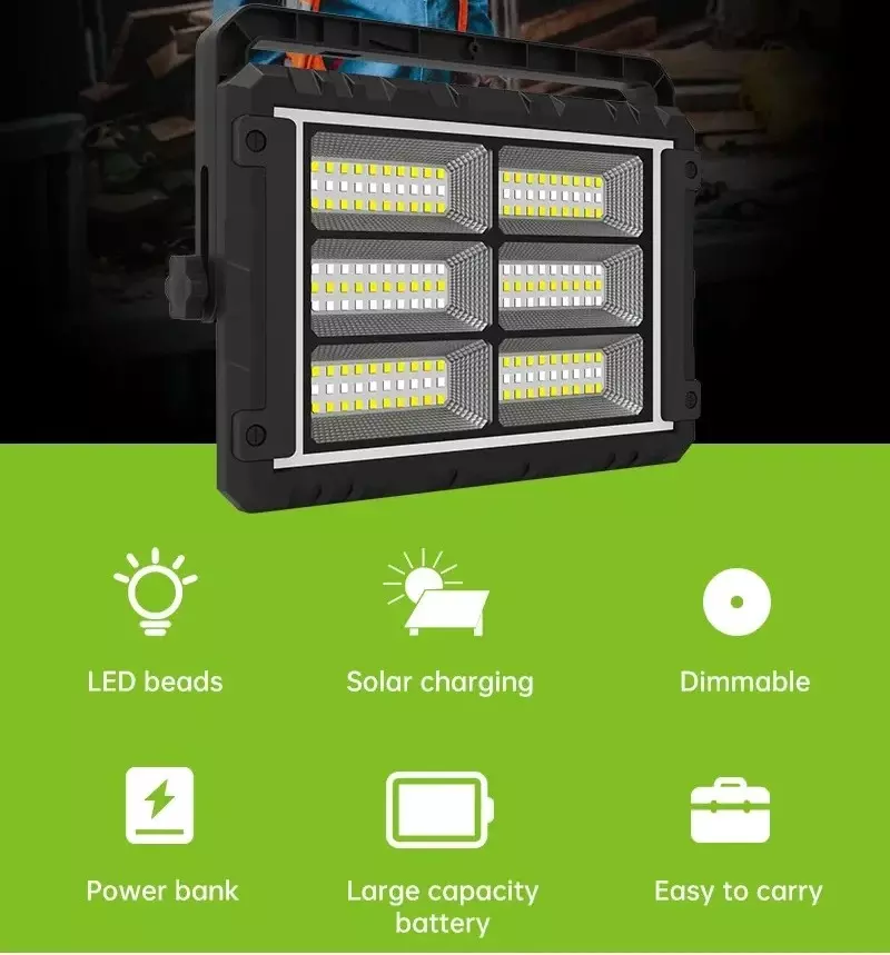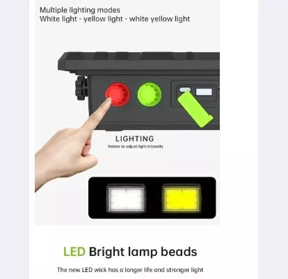 نسخة مطورة من نظام الإضاءة بالطاقة الشمسية ببطارية الليثيوم في الأماكن المغلقة والخارجية مع مجموعة نظام الإضاءة الشمسية الخارجية بالطاقة المتنقلة، ونظام توليد الطاقة في حالات الطوارئ، وبنك الطاقة الشمسية، مع مكبر صوت بلوتوث وFM، وثلاثة مصابيح LED مستقلة