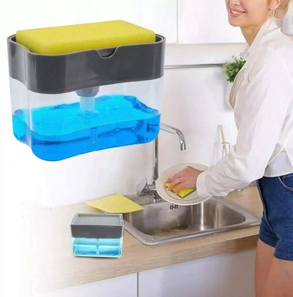• تم تصميم موزع الصابون 2 في 1 ليسهل  عملية وضع الكمية  الصابون على الاسفنجة.