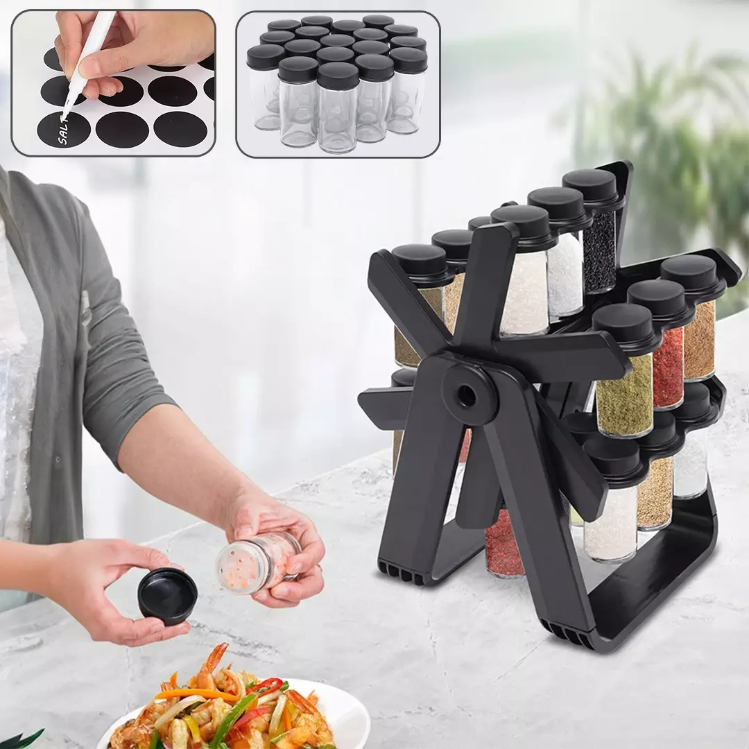 منظم البهارات الدوار 360 درجة مع 18 عبوة زجاجية