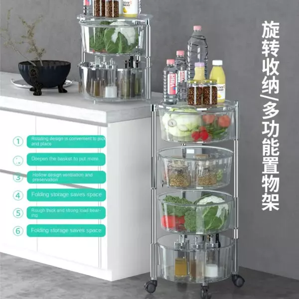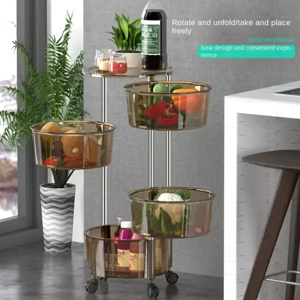 دوران سهل ومريح: يمكن لكل طبقة من الرف أن تدور بحرية، مما يجعل من السهل الوصول إلى الأشياء المختلفة دون الحاجة إلى نقل الرف بأكمله، ويمنحك رؤية شاملة لكل العناصر المخزنة.