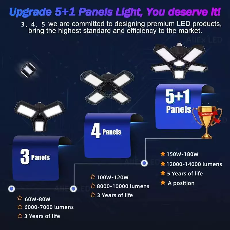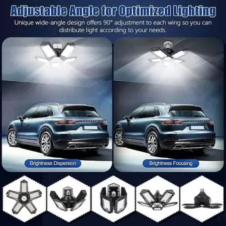 ترقية حديثة لمصباح LED فائق السطوع للمرآب – مزود برقائق LED عالية الإضاءة، بإجمالي سطوع يصل إلى 15000 لومن، مما يوفر 85% من استهلاك الطاقة مقارنة بالمصابيح التقليدية.