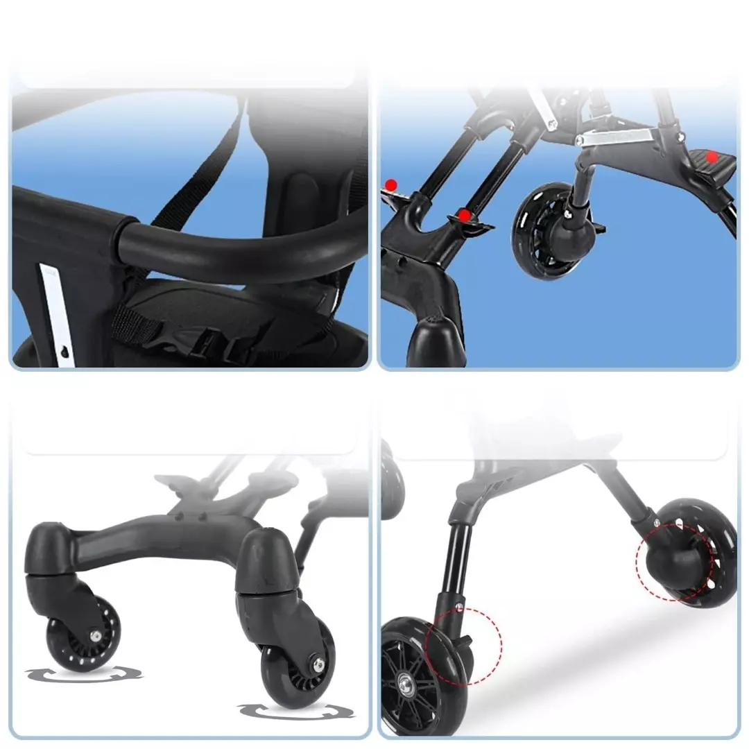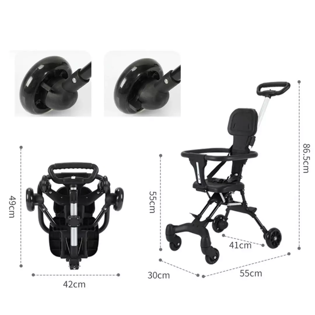 العربة الخفيفة والمدمجة سهلة الطي، ما عليكِ سوى الضغط على زر الطي على المقبض لطي العربة في وقت قصير. مثالية للسفر والتجول وعند الدخول للمولات حيث يمكنكِ حملها بكل سهولة.