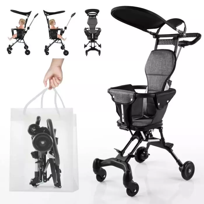 • قابلة للطي ومحمولة: تتميز العربة بوظيفة الطي بيد واحدة، مما يجعلها سهلة الاستخدام والتخزين، كما أنها مثالية للسفر والتنقل دون عناء.