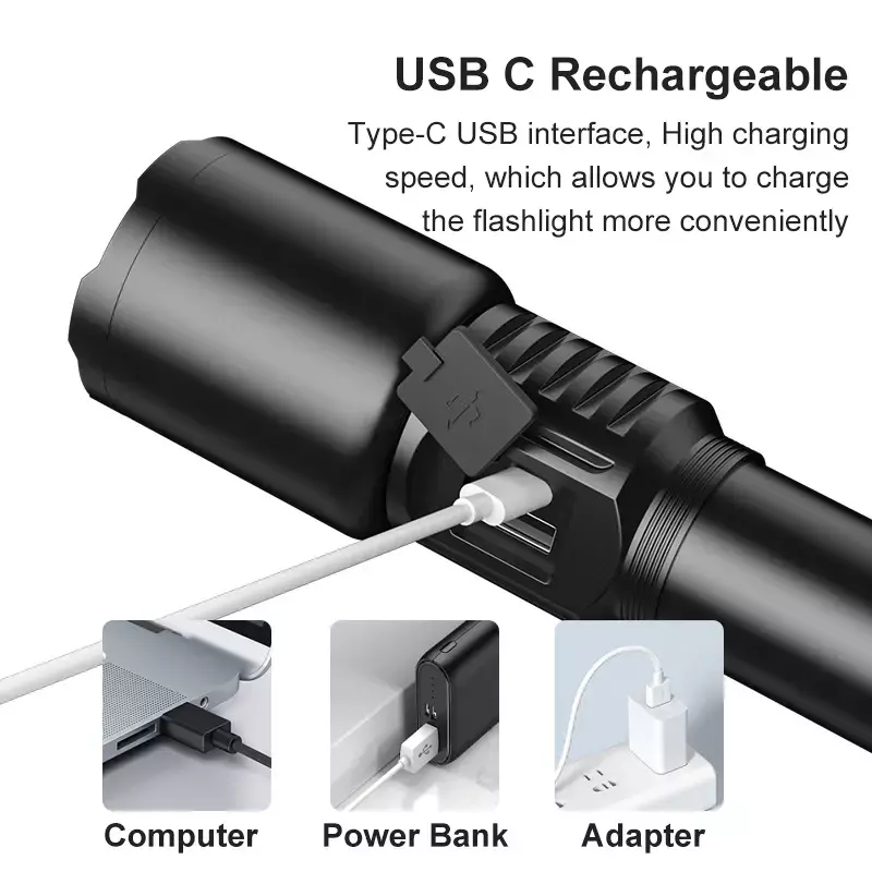 • أضئ مغامراتك باستخدام مصباح يدوي LED أبيض قوي بقوة 6000 لومن، مصمم لتلبية احتياجات الإضاءة الأكثر تطلبًا.