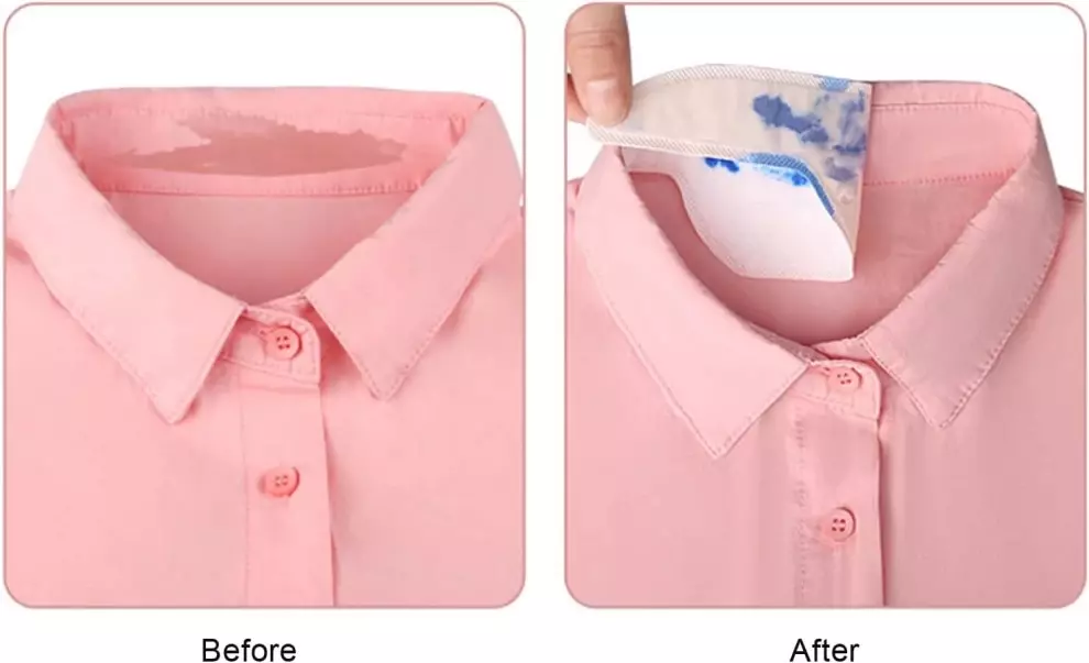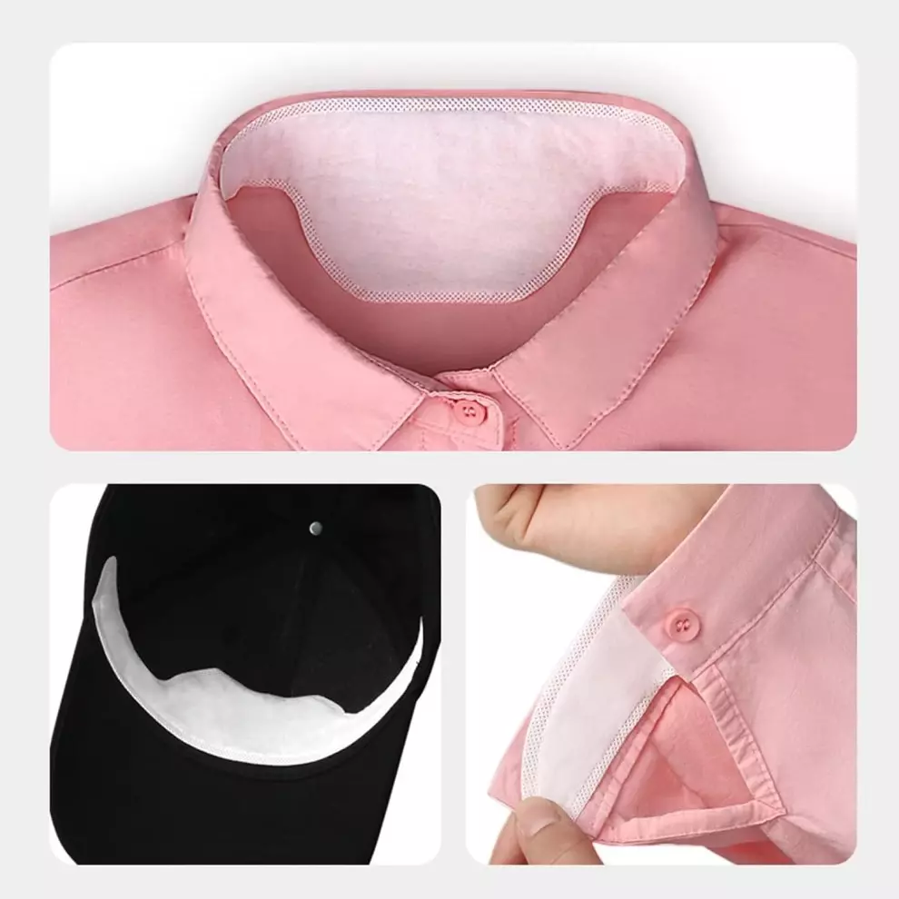 وسادات عرق الرقبة، فقط قشر البطانة وضعها على الجزء الداخلي من طوقك، سهلة الالتصاق والتقشير، لا حاجة إلى دبابيس أو أحزمة