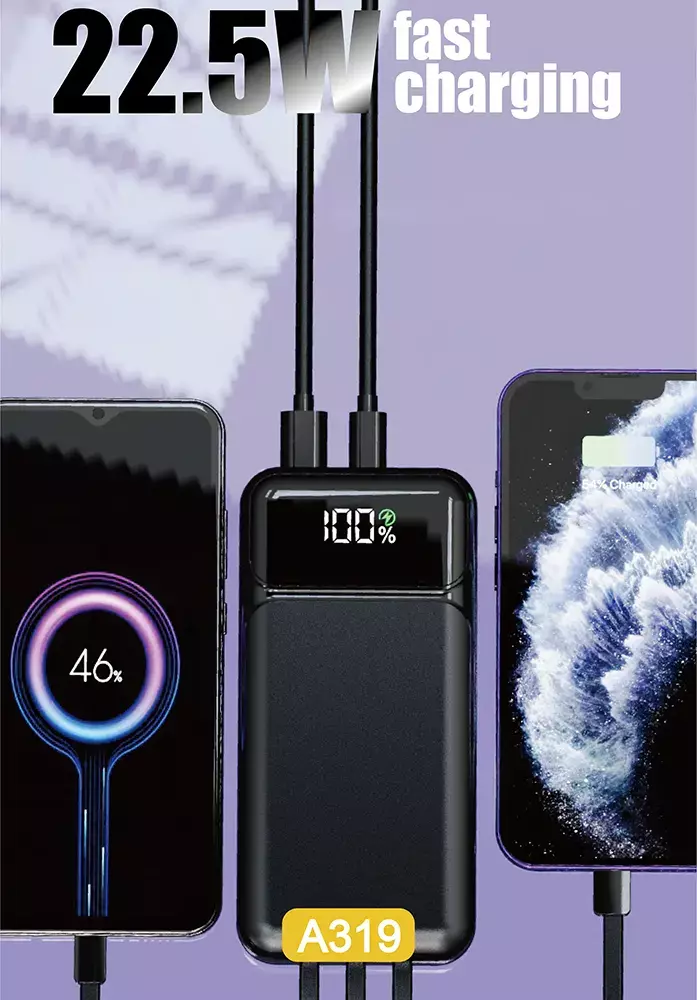 • باور بانك اسبور A319 للشحن السريع 50000 مللي امبير و22.5 واط وباور بانك مدمج عالي السرعة